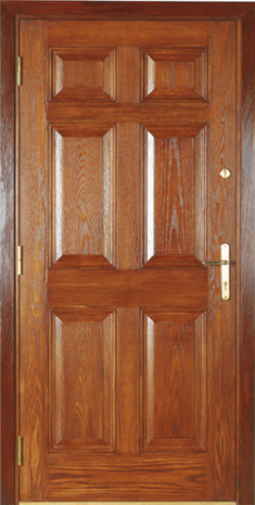 Ramiak dębowy kompozytowy obłożony dwiema wytłoczkami z włókna szklanego, wypełnienie stanowi twarda pianka poliuretanowa, ościeżnica dębowa (z uszczelką wpuszczaną), próg dębowy.